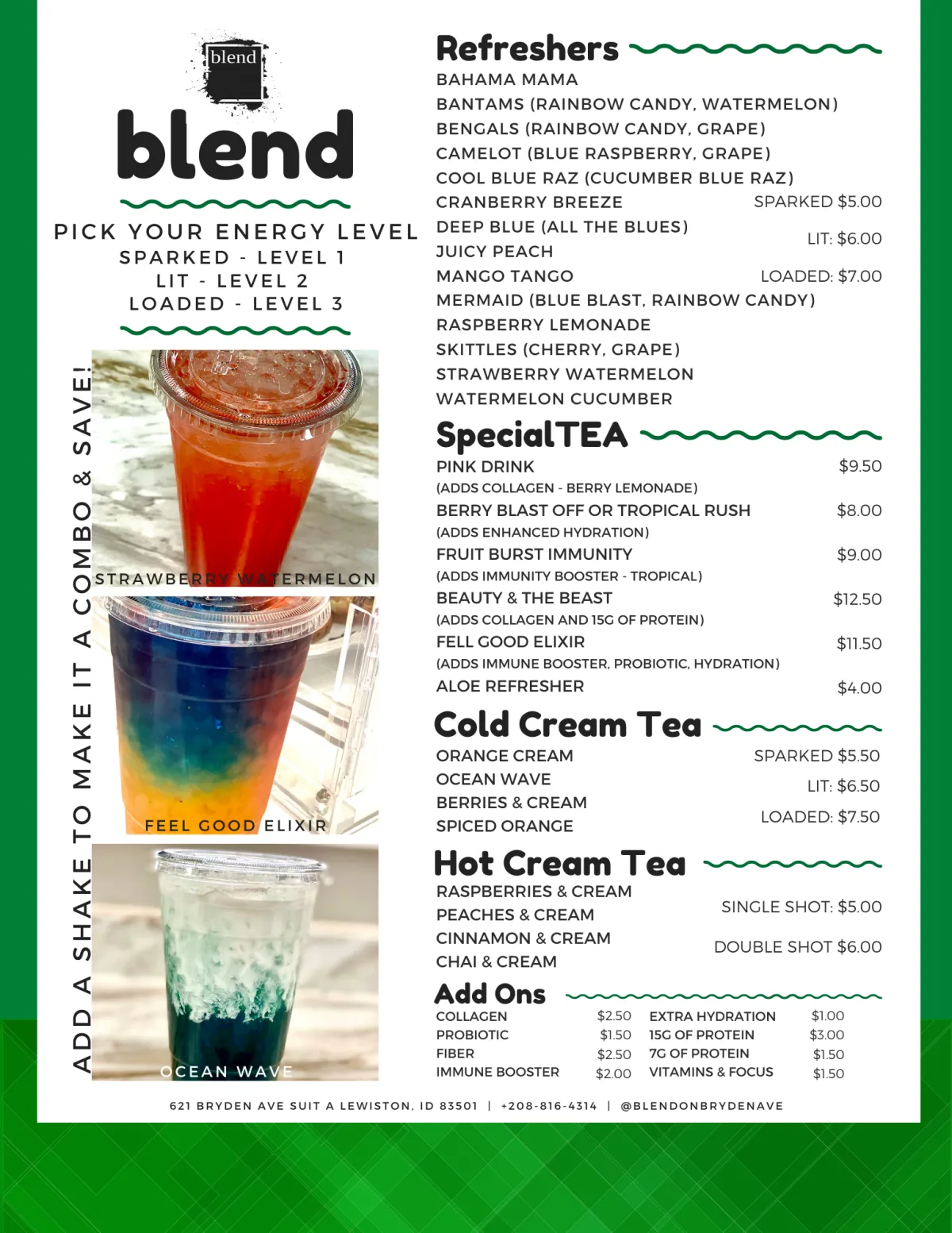 Take a look at the menu below to choose flavors and levels that you would like!